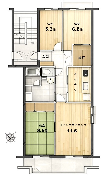 - 間取り:3LDK