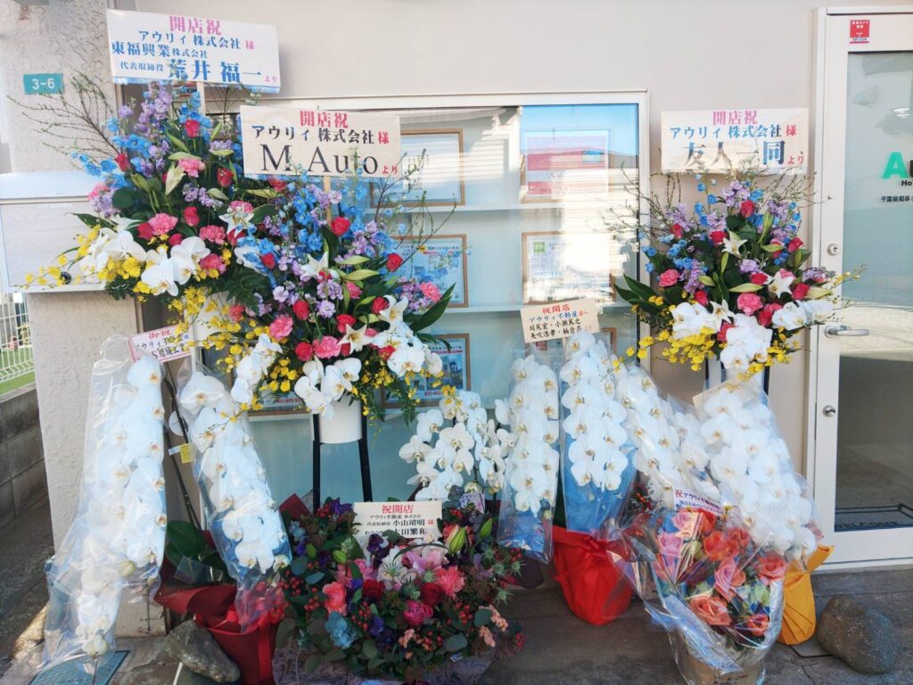 皆様 この度は 念願の不動産屋の開店に際して温かいお祝いのお言葉やお品物をいただき誠にありがとうございます